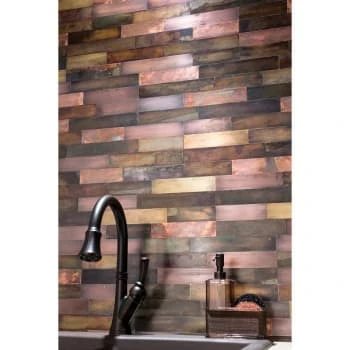- ACP Aspect Distressed Metal Peel & Stick Backsplash In Bronze Relic – Pack Of 3