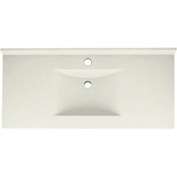 - Swan® Bisque Contour Solid Surface Single Bowl Vanity Top 22″ X 43″ Provides A Contemporary Look With Its Integral Sweeping Bowl And Is Available In A Variety Of Solid And Aggregate Colors. Swanstone™ Solid Surface Material Isn’t Harmed By Acetone, Hot Curling Irons, Makeup Or Hair Dye And Is Easy To Clean And Maintain. Single Hole Drilled With Additional Drill Points Underneath To Also Accommodate 4″ Or 8″ Faucet Spreads. Matte Finish Is Easy To Clean And Maintain With Common Household Cleansers; Even Abrasives Can Be Used. Bowl Measures 20-1/8″ X 13″ X 5-1/2″. Molded-in 3″ Backsplash Helps Prevent Water Damage To Wall And Vanity Back; Side Splashes Sold Separately. Solid Surface Material Is Durable And Will Look Beautiful For Years To Come; Color Runs Completely Through The Vanity Top And Will Not Wear Away. Faucet/drain Assembly, Standard 1-1/4″ Trap, Waste And Tailpiece Plumbing Material Sold Separately.